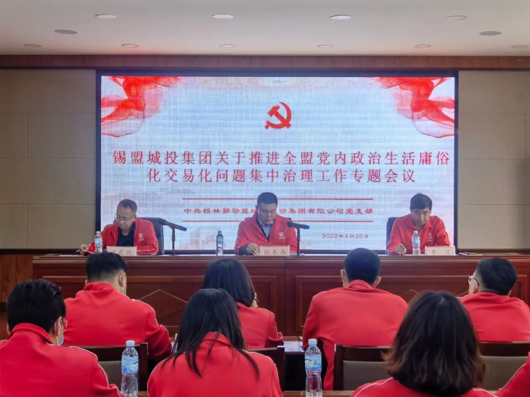 2022年4月20日下午,錫盟城投集團(tuán)召開關(guān)于推動(dòng)黨內(nèi)政治生活庸俗化交易化問題集中治理工作專題會(huì)議,會(huì)議傳達(dá)學(xué)習(xí)了集中治理黨內(nèi)政治生活庸俗化交易化問題的工作方案和問題清單。